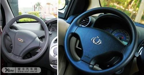 瑞麒M1和熊貓都采用三幅式方向盤設計,瑞麒M1的方向盤中間的LOGO依然使用奇瑞老式車標,方向盤高低可以調(diào)節(jié),適合不同身材的駕駛員使用。吉利熊貓則采用了全新的車標,再設計上達到了統(tǒng)一,這一點奇瑞可能在后續(xù)車型上會采用全新的車標。
