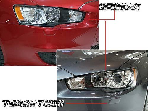 前臉其它部分的設(shè)計則基本相同,不僅是大燈的燈罩及燈組設(shè)計,連前杠兩側(cè)的大燈噴淋裝飾都一模一樣。