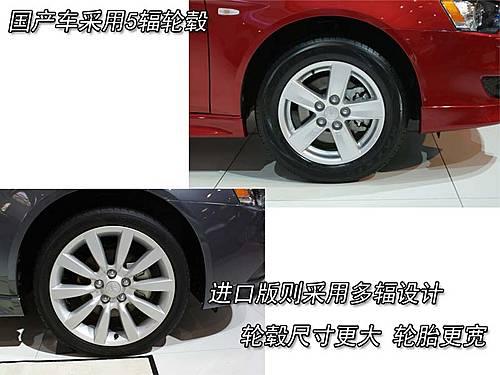 不過相比進(jìn)口車型的多輻輪轂式樣,國產(chǎn)的LANCER EX仍使用了較為經(jīng)典的5輻輪轂式樣,在外觀感覺上不如前者具有動(dòng)感。
