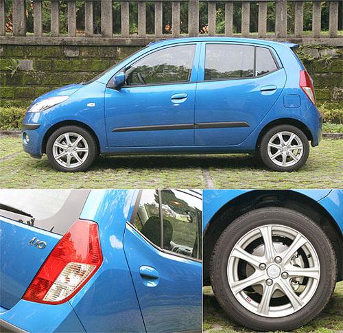 雖然為了爭取較寬敞的車室空間,i10采用了高車身的設(shè)計,但在車側(cè)腰線特意提高,加上側(cè)窗上揚收尾的線條,讓人不容易察覺i10高人一等的車身,在后車門把位置,原廠也在鈑件上加入一道折線,讓視覺效果更為豐富,而此次所試駕的頂級車型,則換上加裝的14吋鋁圈,增添運動氣息。