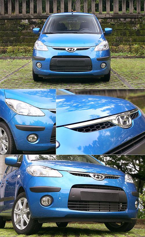 從車頭開始,i10便以銳利的頭燈造型,搭配精致的圓形霧燈,展現(xiàn)了年輕活潑的視覺效果,而在水箱護罩部分的設(shè)計,i10則與Lavita有著異曲同工的手法,但在上緣及橢圓形廠徽四周增添了鍍鉻妝點,視覺效果更為突出,下方氣壩雖然為如同Lavita呈現(xiàn)類似微笑般嘴型的設(shè)計,但仍不減i10的可愛指數(shù)。
