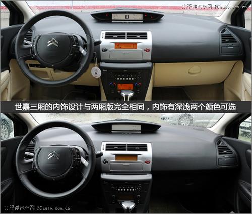 三廂世嘉車內的造型相比兩廂版本沒有任何變化,號稱是先進駕駛艙的氛圍依舊,世界上最復雜的方向盤形式和最簡潔的中控臺是法國人引以為豪的設計,使用起來確實也有不錯的便利性。關鍵是得先習慣方向盤中央不隨外緣一起轉動的特點。