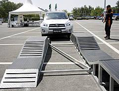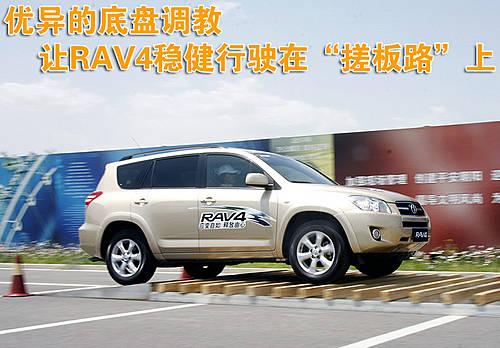 RAV4城市休閑SUV優(yōu)異的底盤調(diào)教,使其行駛在模擬“搓板路”上時,車內(nèi)駕乘人員感覺車兩依然平穩(wěn)舒適。似乎整個RAV4車身懸浮在底盤之上,之間前后懸架在上下調(diào)節(jié)從而適應路面狀況。
