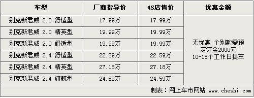 據(jù)4S店銷售人員介紹,目前新君威全系還沒(méi)有優(yōu)惠出現(xiàn),各經(jīng)銷商處有一部分現(xiàn)車已經(jīng)到店。而熱銷的紅色款車型仍然是訂單制銷售。目前可選的現(xiàn)車顏色有金色、灰色等款。消費(fèi)者如果訂車的話,需要交2000元訂金,在10-15個(gè)工作日內(nèi)便可以交車。