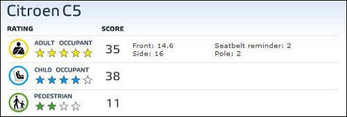 總體看來(lái),C5對(duì)成年人保護(hù)出色獲得5星評(píng)價(jià),對(duì)兒童保護(hù)也比較優(yōu)秀獲得4星評(píng)價(jià),對(duì)于行人保護(hù)相對(duì)較差,僅獲得2星。