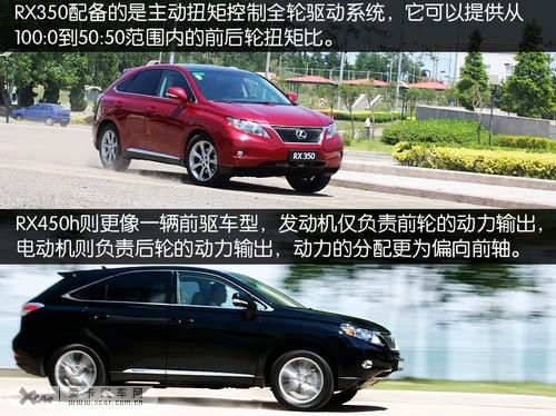 雷克薩斯RX全系均采用了全輪驅動系統(tǒng),雷克薩斯RX350配備的是主動扭矩控制全輪驅動系統(tǒng),它可以提供從100:0到50:50范圍內的前后輪扭矩比,當車輛轉向不足時自動增加后輪扭矩;在車輛轉向過度時則自動減少前后輪扭矩,相應的提高了車輛的操控性能。雷克薩斯RX450h則更像一輛前驅車型,發(fā)動機僅負責前輪的動力輸出,電動機則負責后輪的動力輸出,前后動力的分配更為偏向前軸。