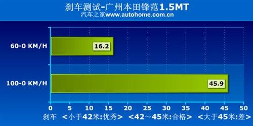 另外,還有一點(diǎn)需要提醒,就是經(jīng)過(guò)我們的測(cè)試鋒范1.5MT舒適型的剎車(chē)成績(jī)很差,45.9米的剎車(chē)成績(jī)除了本身制動(dòng)系統(tǒng)不夠強(qiáng)以外,前面提到的輪胎因素也不可忽視。因此,如果考慮到安全性,不妨更換大一號(hào)的輪胎,雖然加速力也會(huì)同時(shí)受到影響,但畢竟安全才是第一。