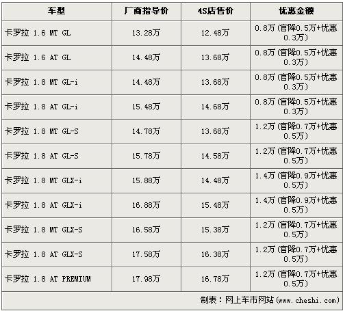 據(jù)4S銷售人員介紹,前段時(shí)間官方對(duì)卡羅拉全系調(diào)整了售價(jià),最高官方降價(jià)達(dá)到了9000元,并且近期在店內(nèi)購買卡羅拉的消費(fèi)者還可以得到最高5000元的優(yōu)惠,累計(jì)全系最高讓利達(dá)到了1.4萬元。經(jīng)優(yōu)惠后,全系入門級(jí)的1.6 MT GL版車型售價(jià)降到了12.48萬元。