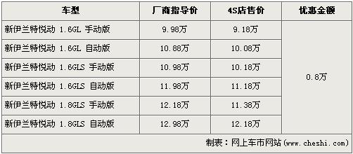 據(jù)北京現(xiàn)代經(jīng)銷商處銷售人員介紹,新伊蘭特悅動全系車型優(yōu)惠8000元,經(jīng)優(yōu)惠后全系入門級的1.6L GL手動版的售價為9.18萬元,是全系的最低價格。銷售人員還介紹,1.6L車型現(xiàn)車充足,而1.8L車型店內(nèi)現(xiàn)車有限顏色不全,欲購買無現(xiàn)車的1.8L車型消費者需交納3000元現(xiàn)金,等一周后可提車。