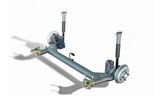 說完了獨立式懸掛,我們再來說說非獨立的,其中最有名,使用最廣泛的當然就是扭力梁式(又稱拖曳臂式)半獨立懸掛。它是用一根粗大的扭力梁把左右兩側(cè)的縱向搖臂焊接在一起,這種懸掛的優(yōu)點是結(jié)構(gòu)簡單,左右兩側(cè)車輪處所占用的空間很少,同時車身的外傾角沒有變化,避震器不發(fā)生彎曲應力,所以摩擦小,乘坐性佳。如果調(diào)校得當,可以用最少的成本和空間達到最好的效果,所以現(xiàn)在的小型車和緊湊型車多采用這種形式的后懸掛。