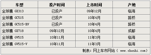吉利汽車在細化品牌之后便將重心轉移到了新車的推出計劃上。旗下的全球鷹品牌整體規(guī)劃也漸漸浮出水面,記者由吉利方面獲悉,未來三年內全球鷹品牌將陸續(xù)投產并上市6款不同級別的新車,足見吉利汽車對全球鷹品牌的重視。具體投產計劃如下: