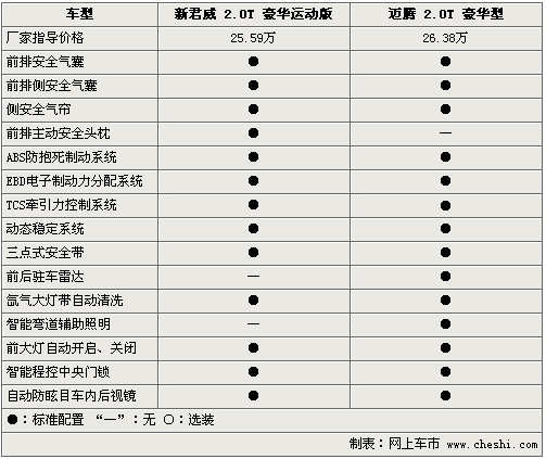 在豪華配置方面,新君威2.0T和邁騰2.0T更是不遺余力的配備各自高端配置,電動(dòng)天窗、定速巡航、電動(dòng)座椅、座椅電加熱以及分區(qū)自動(dòng)空調(diào)均稱(chēng)為兩款車(chē)的標(biāo)準(zhǔn)配置。但新君威2.0T配備的電磁隨速轉(zhuǎn)向系統(tǒng),讓其整體的操控性略高于邁騰2.0T。此外,邁騰2.0T配備的電子手剎、12向電動(dòng)真皮坐椅和電動(dòng)折疊后視鏡等配置,似乎要比新君威2.0T更加時(shí)尚。