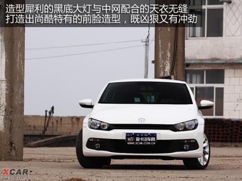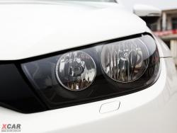 造型犀利的黑底大燈與中網配合的天衣無縫,打造出尚酷特有的前臉造型,既兇狠又有沖勁。遠遠望去,仿佛一只匍匐著的貓科猛獸,瞇著雙眼等待著獵物的到來,它不需要有血盆大口,僅憑眼神便可令對手毛骨悚然。只是這對眼神雖然夠犀利,但視力不太好,此次試駕車并沒有裝備氙氣大燈。雖然尚酷2.0TSI的售價還未公布,但參考5代GTI的價格來看,我們還是希望這款接近40萬元售價的跑車可以將配置提高一些。