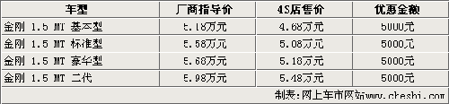 據(jù)北京地區(qū)吉利4S店銷售人員介紹,新一代金剛已經(jīng)上市,前臉及大燈等地方都有變化,售價5.98萬元。另外還有老款金剛,一共有四款車型,目前金剛的現(xiàn)車比較充足,全系都可以優(yōu)惠五千元。
