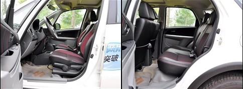 首先說說SX4較高的駕駛坐姿,個(gè)人感覺很適合這類Cross車型的特點(diǎn),視野開闊、方便輕松駕駛。其次,這款運(yùn)動(dòng)版車型的座椅采用了雙色雙材料設(shè)計(jì),視覺效果不錯(cuò),且支撐性和包裹性都令人滿意。前排側(cè)向的支撐較硬,坐墊角度合適,個(gè)人認(rèn)為長(zhǎng)時(shí)間駕駛帶來的疲勞程度在可接受的范圍內(nèi)。