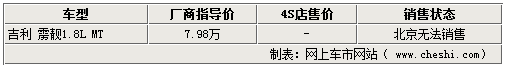 經(jīng)銷商表示,吉利靂靚跑車因排放原因而退出了北京市場,各家店內(nèi)都沒有現(xiàn)車也無法銷售,全系車型僅提供除北京以外的排放標(biāo)準(zhǔn)為國三的外地省市,非常遺憾。不過銷售人員表示,全新的吉利中國龍將有望很快開始銷售,望消費(fèi)者繼續(xù)關(guān)注吉利跑車的動態(tài)。