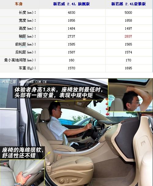 新君越的前后排乘坐空間很寬敞