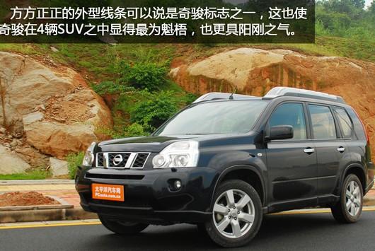 奇駿的方方正正的外型線條已經(jīng)是它的標(biāo)志之一,從上一代車型上沿用下來的設(shè)計元素使得第二代奇駿也很富越野的風(fēng)格,F(xiàn)款車型的鍍鉻大型中網(wǎng)以及梯形的大燈,使奇駿車頭相當(dāng)?shù)木哂袣鈩。同樣是因為方正的外型線條,令奇駿在4輛SUV之中顯得最為魁梧,也更具陽剛之氣,所以我估計奇駿起碼有8成都是男性車主,不知道是否大家同意我的看法?