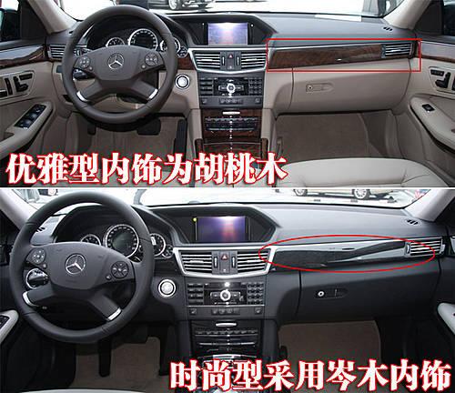 奔馳新E300優(yōu)雅型和時尚型除內(nèi)飾條材質(zhì)差異外,全車真皮坐椅的剪裁也略有差異。奔馳新E300優(yōu)雅型作為入門級車型,全車真皮坐椅采用縱向條紋設(shè)計,而奔馳新E300時尚型則采用橫向條紋設(shè)計。