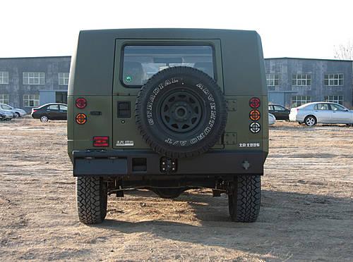 其外形設(shè)計(jì)的目標(biāo)原則是強(qiáng)調(diào)在繼承中發(fā)展的思路,實(shí)現(xiàn)突破創(chuàng)新和現(xiàn)代感的全新造型;強(qiáng)調(diào)具有中國(guó)文化底蘊(yùn),不與國(guó)內(nèi)、國(guó)外車型雷同;在保持傳統(tǒng)特色的同時(shí),來(lái)強(qiáng)化現(xiàn)代感。其以粗獷、簡(jiǎn)潔、威武的造型,展現(xiàn)了我軍威武之師、現(xiàn)代軍隊(duì)的風(fēng)貌和現(xiàn)代“硬派”越野車的風(fēng)格。外形個(gè)性鮮明,車身外觀緊湊而流暢,前臉造型模仿狼眼外眼角上揚(yáng)、怒視前方的表情,與前保險(xiǎn)杠融為一體的狼牙造型,將野性、威猛的氣勢(shì)演繹得淋漓盡致。篷頂后部稍向下沿伸,恰似豹子起跑前的后坐姿勢(shì),突出了整車的動(dòng)感與強(qiáng)悍。