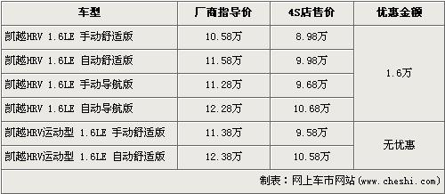 據(jù)經(jīng)銷商處銷售人員介紹,別克凱越HRV已經(jīng)停產(chǎn),店內(nèi)在售的車型只有舒適版和導航版,運動版車型已經(jīng)沒有庫存車。在售的舒適版和導航版車型優(yōu)惠1.6萬元,全系入門級的手動舒適版售價降到了8.98萬元。