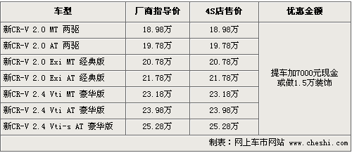 據(jù)4S店銷(xiāo)售人員介紹,目前購(gòu)買(mǎi)本田CR-V仍需要加價(jià)提車(chē),需要加現(xiàn)金7000元或者加1.5萬(wàn)元的全車(chē)裝飾,裝飾包括了腳墊、尾翼、行李架、踏板等。消費(fèi)者可根據(jù)需求選購(gòu),但是必須達(dá)到1.5萬(wàn)元的消費(fèi)金額。目前2.0和2.4自動(dòng)檔有黑色、銀色現(xiàn)車(chē)供應(yīng),其他特殊顏色還需要預(yù)定。
