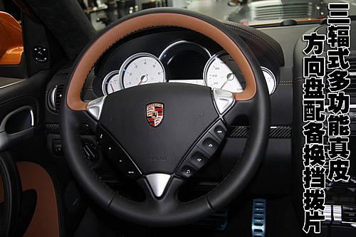 保時(shí)捷卡宴Turbo S三輻式多功能方向盤(pán)采用真皮材質(zhì),手感舒適且做工考究。通過(guò)方向盤(pán)上的換擋撥片可實(shí)現(xiàn)類似跑車的手動(dòng)換擋,突顯駕駛樂(lè)趣。而集中在方向盤(pán)左右的快捷按鈕觸手可及,方便日常使用。