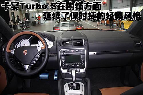 卡宴Turbo S在內(nèi)飾方面延續(xù)了保時(shí)捷的經(jīng)典風(fēng)格,位于轉(zhuǎn)向柱左側(cè)的點(diǎn)火開(kāi)關(guān)、三輻式方向盤(pán)及大面積的真皮飾面均出現(xiàn)保時(shí)捷卡宴Turbo S上。此外還可選裝具備全字識(shí)別導(dǎo)航系統(tǒng)目的地功能的語(yǔ)音啟動(dòng)系統(tǒng)、通用音頻接口(帶MP3接口)、藍(lán)牙移動(dòng)電話連接以及可接收數(shù)字和模擬地面信號(hào)的電視模塊。
