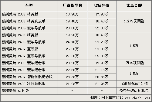 隨著十一國慶長假的臨近,各品牌紛紛推出了各種各樣的促銷降價(jià)政策。中級(jí)車市場(chǎng)在保持原來優(yōu)惠幅度的基礎(chǔ)上也有相應(yīng)的促銷,比如凱美瑞、雅閣等都推出了送保險(xiǎn)等活動(dòng),相信在國慶期間還將有更多相關(guān)的活動(dòng)推出。以下我們總結(jié)了近期6款中級(jí)車的最新市場(chǎng)行情,僅供參考。