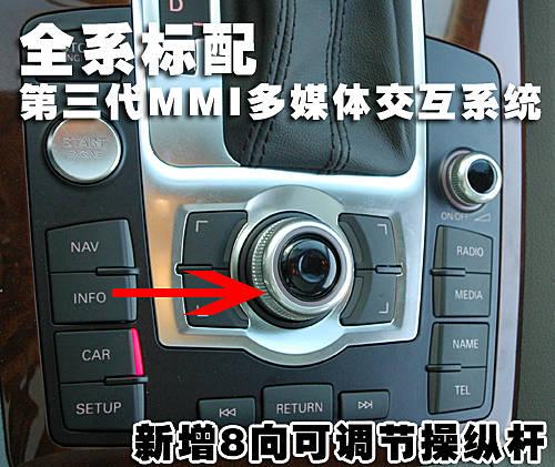 第三代MMI多媒體交互系統(tǒng)成為新奧迪Q7豪華配置中最大的亮點之一,它集合了三維立體導(dǎo)航系統(tǒng)、更加強大的多媒體娛樂功能和更加人性化的操作。位于換擋桿后方的第三代MMI多媒體交互系統(tǒng)操作終端充分考慮人機工程學(xué)原理,中央旋鈕上方增加的操作按鈕可進行8方向操作,在導(dǎo)航界面和DVD播放時更加便于使用者實現(xiàn)目標功能。
