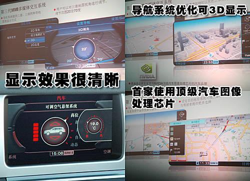 基于硬盤驅(qū)動(dòng)的全新系統(tǒng)不僅信息處理速度更快,超大的硬盤空間更可存儲(chǔ)海量信息。第三代MMI多媒體交互系統(tǒng)提供分辨率為800×480像素的7英寸液晶顯示屏,在光線較暗的使用環(huán)境下仍能提供清晰的完美畫質(zhì)。