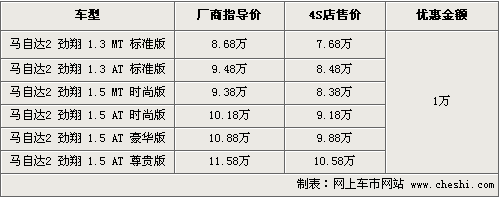 據(jù)4S店銷售人員介紹,三廂優(yōu)惠幅度為1萬(wàn)元,據(jù)銷售人員介紹,選購(gòu)馬2的消費(fèi)者多數(shù)選擇2廂車,而三廂在性價(jià)比上更超值。目前豪華版和時(shí)尚版有現(xiàn)車供應(yīng),入門車型優(yōu)惠后僅為7.68萬(wàn)。