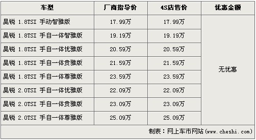 據(jù)4S店銷售人員介紹:目前明銳全系最高優(yōu)惠9000元,1.6升及1.8TSI車型優(yōu)惠減少,尤其1.8TSI車型由原來的8500元降至5000元。2.0升目前優(yōu)惠9000元,優(yōu)惠幅度很大,并且2.0升車型有現(xiàn)車,顏色包括銀色、灰色車型。1.6升車型全系現(xiàn)車少,如需預(yù)定最短等待1個(gè)月,最長需等3個(gè)月時(shí)間。目前1.6升車型優(yōu)惠達(dá)5000元,1.8TSI的兩款車型優(yōu)惠5000元。如在店內(nèi)做裝飾還可打8折,雖然折后裝飾價(jià)格仍有些偏高,但產(chǎn)品質(zhì)量可以保證。