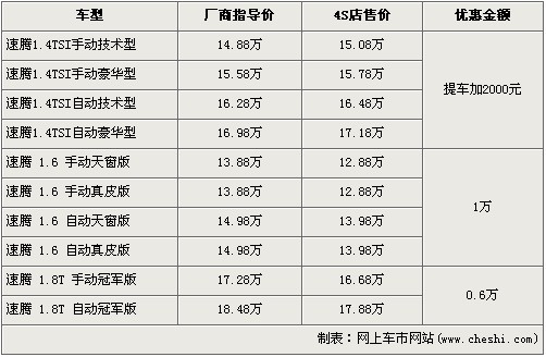 速騰全系最高優(yōu)惠1萬元 1.4TSI加價(jià)提車