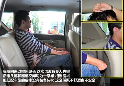 和其它小型車相比,驪威多少顯得有些另類。達(dá)到緊湊級別的2600mm軸距使它成為了這個級別的軸距王,內(nèi)部空間無疑是驪威最大的優(yōu)勢所在,但造就這樣空間表現(xiàn)的外形設(shè)計卻不是每個人都能接受的。此外我們發(fā)現(xiàn)驪威最低配全能型的后排座椅沒有裝備頭枕,這對舒適性和安全性都有較大影響,因此并不建議購買最低配車型。