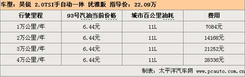 昊銳配備的2.0TSI發(fā)動(dòng)機(jī)在轉(zhuǎn)速達(dá)到5100rpm時(shí)可以輸出147kw的最大功率,在1700rpm時(shí)可以產(chǎn)生280Nm的最大扭矩,動(dòng)力性能更加強(qiáng)勁,無(wú)論在起步、加速、爬坡或是其他任何工況下,都可以讓駕駛者盡情地享受駕駛樂(lè)趣。根據(jù)網(wǎng)友實(shí)際油耗調(diào)查系統(tǒng)表示,昊銳2.0TSI百公里實(shí)際油耗為11L,行駛1萬(wàn)公里需要花費(fèi)7084元。