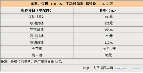 一汽大眾邁騰的機(jī)油三濾及其他配件的價(jià)格還是比較高的。邁騰的保養(yǎng)價(jià)格貴很大一定程度上是因?yàn)槠渑浼M(fèi)用較高,因?yàn)槠渑浼芏喽际遣捎玫倪M(jìn)口配件,而且邁騰的很多配件的更換難度都要大于其他品牌的車。不過隨著邁騰保有量的增加,保養(yǎng)費(fèi)用應(yīng)該也會(huì)隨之減低。邁騰一次小保養(yǎng)需要612元,而在3萬公里進(jìn)行的大保養(yǎng)就需要2100元。