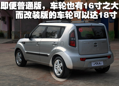 您是否看到過任何一款A(yù)0級的小車使用到了16寸的輪胎輪轂?答案當(dāng)然是沒有的,目前大部分同級別同價位車型最多也就是使用到了15寸而大部分還是停留在14寸而已。東風(fēng)悅達(dá)起亞SOUL的大尺寸輪胎輪轂個性鮮明,提升了整車的檔次感,也讓這款車型更加具備了一款CROSS OVER車型的感覺。