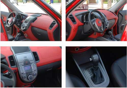 在方向盤也就是駕駛者的周圍分布著很多按鈕,不過別擔(dān)心,再生疏的駕駛者也不會因為這些按鈕或是功能而手忙腳亂,因為設(shè)計師早已經(jīng)為您的日常使用考慮的很周到了。位于儀表臺左側(cè)的三炮筒式儀表盤設(shè)計還算時尚,但是儀表盤的功能并沒有太多新鮮元素的注入,這一點也是因為成本的考慮而不得不落入俗套。中控臺左側(cè)下方是控制大燈高度的調(diào)節(jié)按鈕,右側(cè)的控制鈕是SOUL的最大特點,即控制前車門揚聲器發(fā)光的開關(guān),它可以跟隨音樂節(jié)奏變換紅色燈光的閃爍,如同將迪廳的燈光帶入了車內(nèi)。