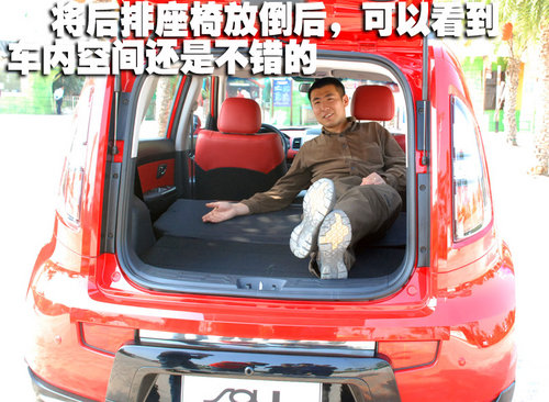 后排座椅可以全部放倒或是4/6比例分割放倒,這里面的空間足夠容納兩個(gè)人或是一臺(tái)大洗衣機(jī)或是電視了,買(mǎi)來(lái)SOUL用來(lái)搬家也許不是最好的主意,不過(guò)一旦有需求SOUL真的可以滿足儲(chǔ)物的需要了。后排座椅在乘坐三名乘員的時(shí)候顯得比較緊湊,畢竟這還只是一臺(tái)A0級(jí)的小車(chē)而已,所以對(duì)于空間我們也不應(yīng)有太多的奢求。