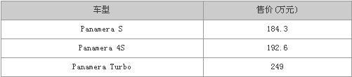 2009年11月9日,保時(shí)捷以“至善者不息”為主題,在廈門舉行了全新Panamera的發(fā)布會(huì),并且宣布新車將于11月底于全國范圍內(nèi)各家保時(shí)捷中心到店。共發(fā)布了三款車型,分別為Panamera S、Panamera 4S和Panamera Turbo,詳細(xì)車型售價(jià)請(qǐng)見下表: