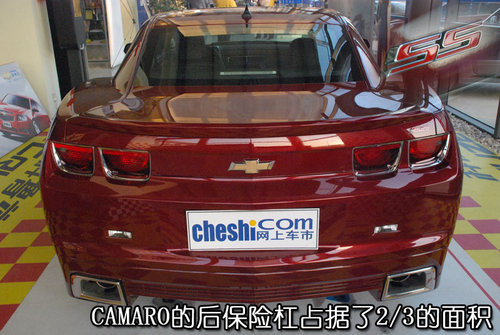 轉(zhuǎn)到車尾,Camaro的尾部雖然非常飽滿,但是有棱有角的“飛鏢式”造型始終是貫穿全車。后保險(xiǎn)杠造型極其夸張,巨大的后保險(xiǎn)杠整整占據(jù)了車尾2/3的面積,如果行駛在道路上不知道后車看見(jiàn)如此震撼的車尾還有沒(méi)有膽量踩下油門(mén)。