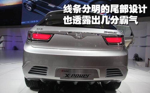 從尾部看上去,廣汽X-power概念SUV的線條非常分明,但由于尾燈的配合,顯得非常霸氣。這款SUV的尾燈采用紅色的設(shè)計,四周配備了鍍鉻裝飾條,而且尾部還設(shè)計了擾流唇和造型獨特的排氣口。