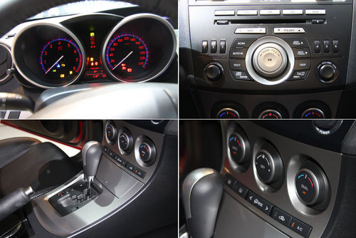 全車標(biāo)配了真皮座椅用料似乎比舊款有所提升,手感和工藝都數(shù)上乘水平。前排座椅的坐墊相比舊款分別加寬了20mm和加高了35mm,提高了舒適度之余,也增加了包裹性和高速入彎時的承托力,有效減少了身體的側(cè)滑。馬自達(dá)的multi-information display(MID)系統(tǒng),包括一塊液晶屏、智能鑰匙、無鑰匙啟動系統(tǒng),而中控臺則標(biāo)配了6碟CD,F(xiàn)M/AM和雙區(qū)域恒溫空調(diào)控制鍵。