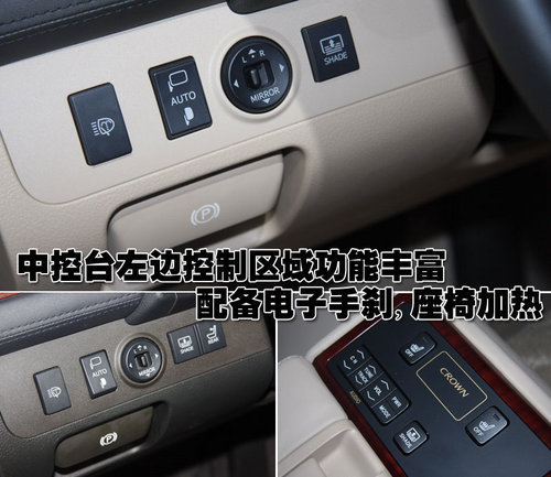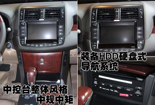 新皇冠的中控臺(tái)按鈕的設(shè)計(jì)均勻的布局在顯示屏四周,下方為隱藏式CD設(shè)計(jì)。整體的風(fēng)格上顯得過于沉穩(wěn)而顯得活力不足。同時(shí)裝配的HDD硬盤式導(dǎo)航系統(tǒng)等多項(xiàng)高端配置為消費(fèi)者提供了更多的尊貴享受。
