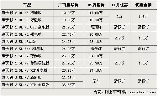 筆者了解,相比11月份的優(yōu)惠幅度,目前新天籟價格最高優(yōu)惠僅為1.8萬元,上個月的最高優(yōu)惠則為2.3萬元,但是現(xiàn)車供應情況仍然比較緊張,除了標準版和舒適版有部分可選擇外,2.5升的部分車型仍需要訂購,月底將到一批新車。入門級優(yōu)惠后售價為17.68萬。