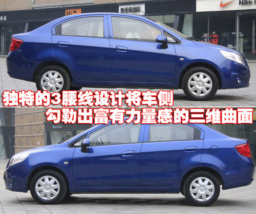 雪佛蘭-新賽歐車身側(cè)面的三條腰線,勾勒出富有立體感和力量感的三維曲面。而其前長后短的車頭車尾比例、前短后長的懸掛分配、上薄下厚的體積組合和前低后高的車身姿態(tài),也進(jìn)一步突出了新賽歐的外觀視覺效果。