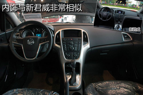 英朗的方向盤造型與新君威如出一轍,在1.8自動豪華版車型上則是配備集成了音響控制鍵的多功能方向盤,這項配置在低配版車型上也是沒有的。