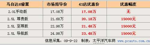 由于宣傳周期過長貨源一直緊缺,睿翼上市后并沒有達到廠家的銷量任務,雖然睿翼定價偏低依舊不能得到消費者認可。目前馬自達6睿翼可優(yōu)惠15000元,并且還可贈送相當可觀的大禮包,現(xiàn)車較為充足。作為馬自達6的升級換代產(chǎn)品,其在北方市場的銷售一直比較平淡,此次降價也是為了更好的迎合市場。馬自達6睿翼安全和舒適性配置比較突出,雙開啟模式電動天窗、方向盤換擋撥片、雙區(qū)獨立控制自動空調(diào)系統(tǒng)、6安全氣囊等等,這些都是睿翼的標配,作為一款中高級轎車這樣的配置與同級別車相比還是很有優(yōu)勢的。另外睿翼采用了輕量化車身的設計,整車重量有所減少,在節(jié)油方面功效顯著。