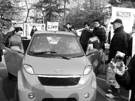 1月31日,濟(jì)南南郊賓館,不少市民來(lái)參觀正在展示的電動(dòng)汽車。